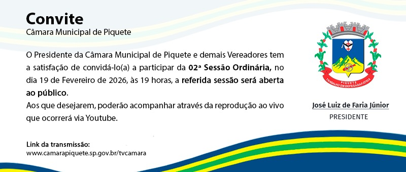 CÂMARA MUNICIPAL DE PIQUETE REALIZA 1ª SESSÃO ORDINÁRIA E APROVA PROJETOS DE GRANDE RELEVÂNCIA PARA O MUNICÍPIO