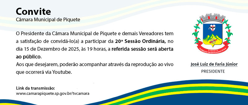 CÂMARA DE PIQUETE REALIZA 19ª SESSÃO ORDINÁRIA e 1ª SESSÃO EXTRAORDINÁRIA DE 2025
