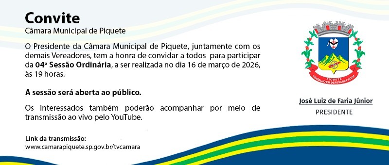 CÂMARA MUNICIPAL DE PIQUETE REALIZA 1ª SESSÃO ORDINÁRIA E APROVA PROJETOS DE GRANDE RELEVÂNCIA PARA O MUNICÍPIO